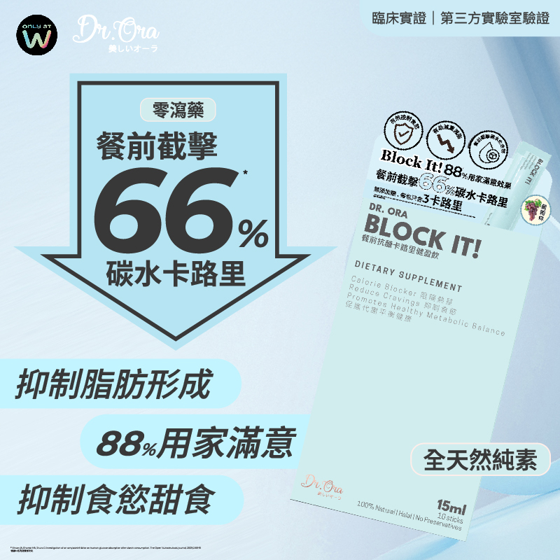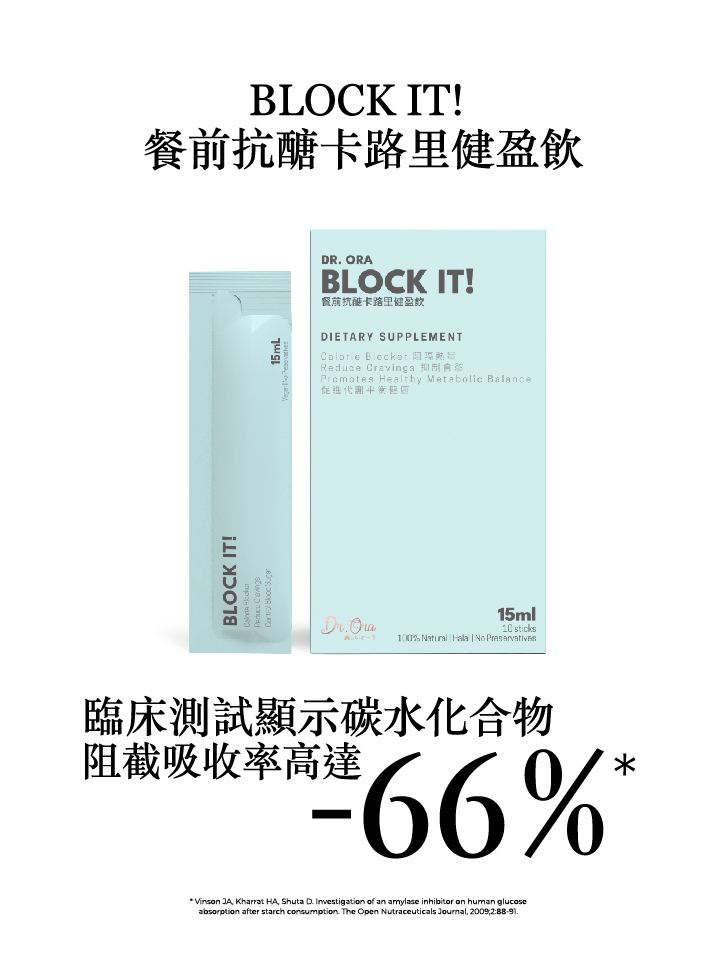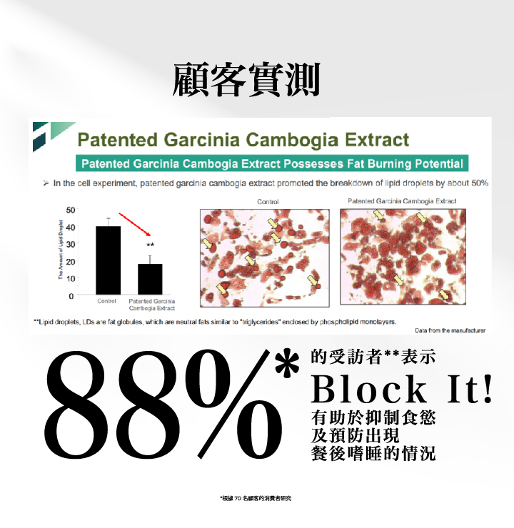 ✔ 88% 受訪者表示 BLock it! 有助抑制食慾及預防出現餐後啫睡情況