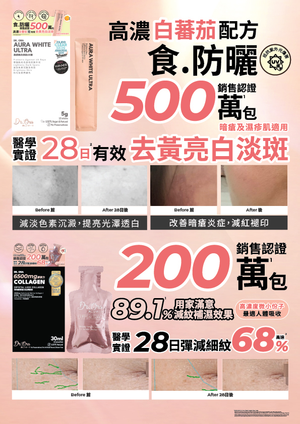 食 . 防曬 (Aura White Ultra 亮妍美白淨肌UV素 5 包)